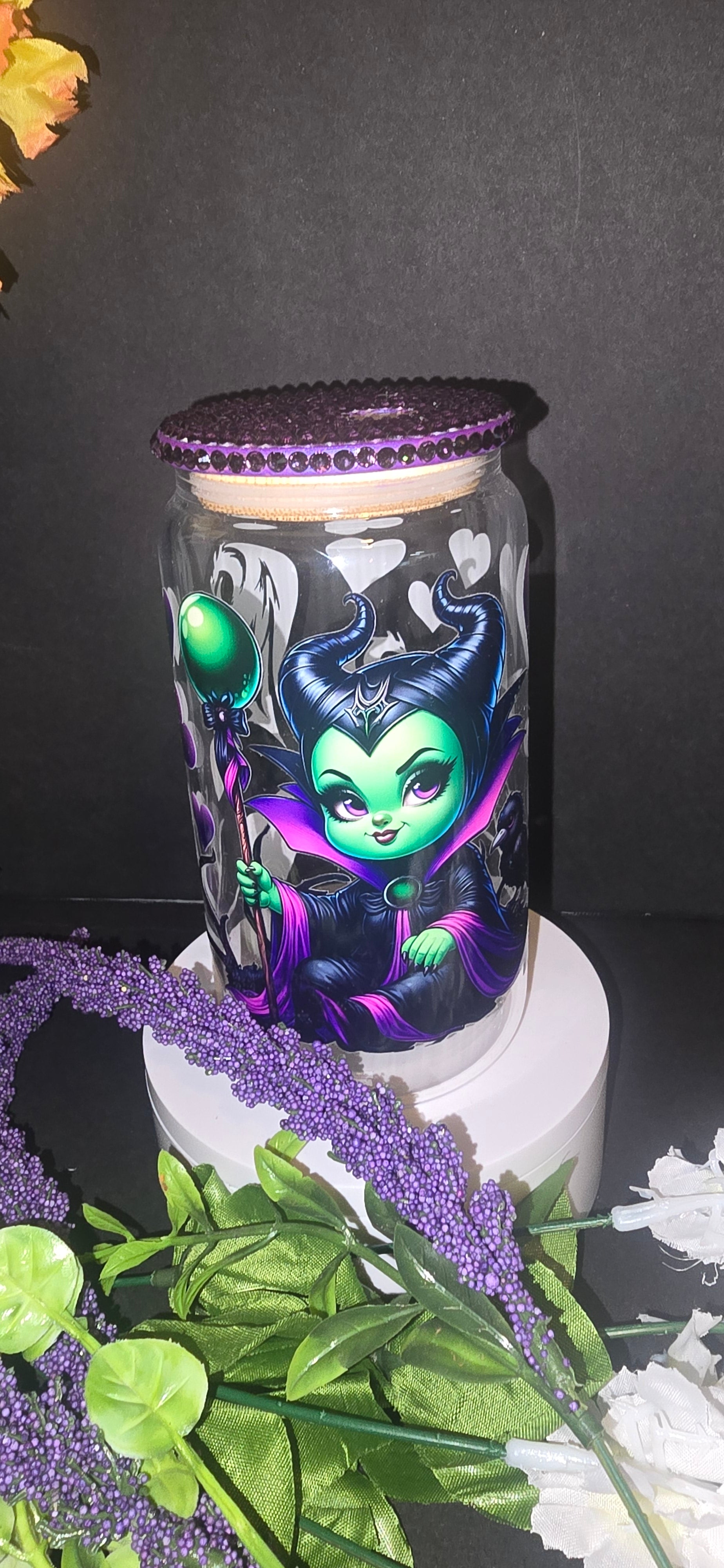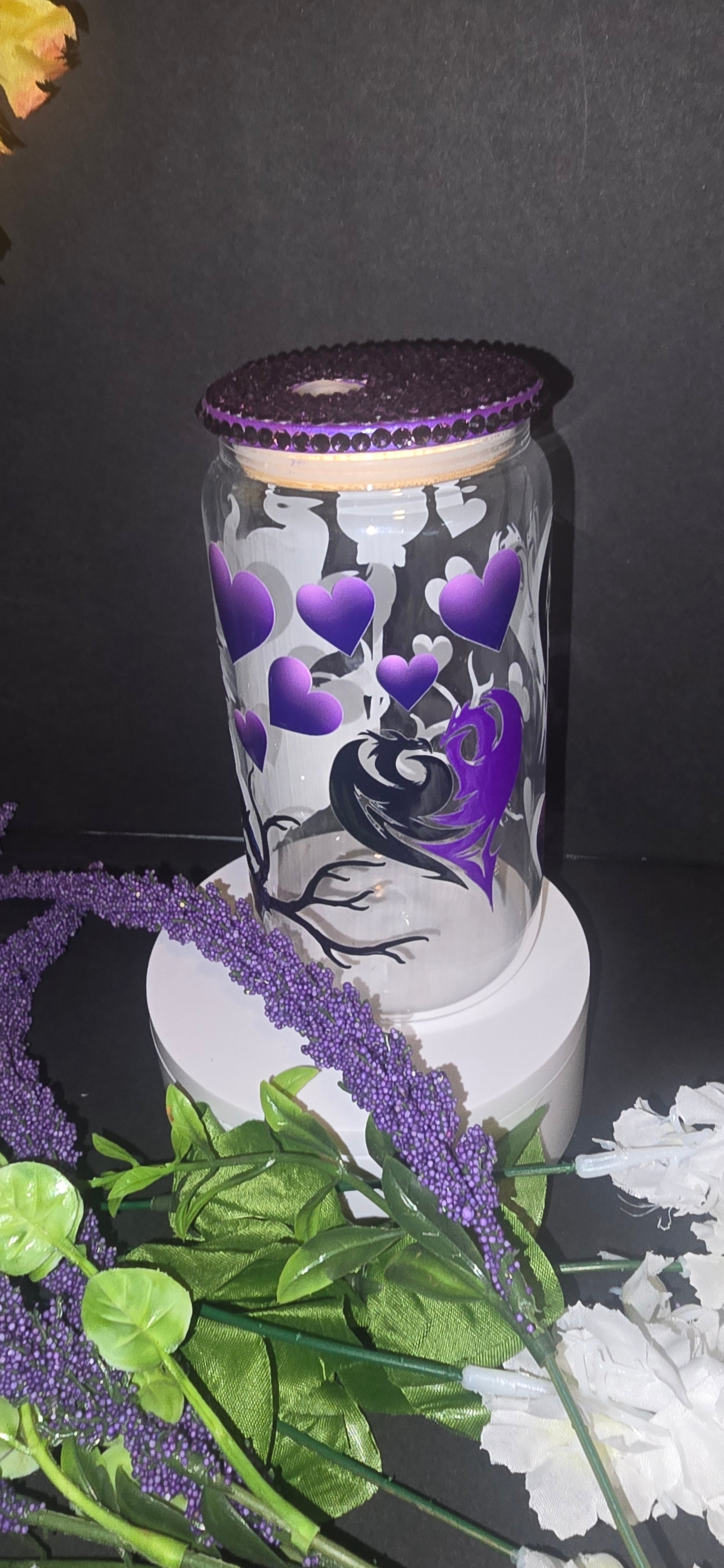 16 oz tumbler w rhinestone bamboo lid and straw.