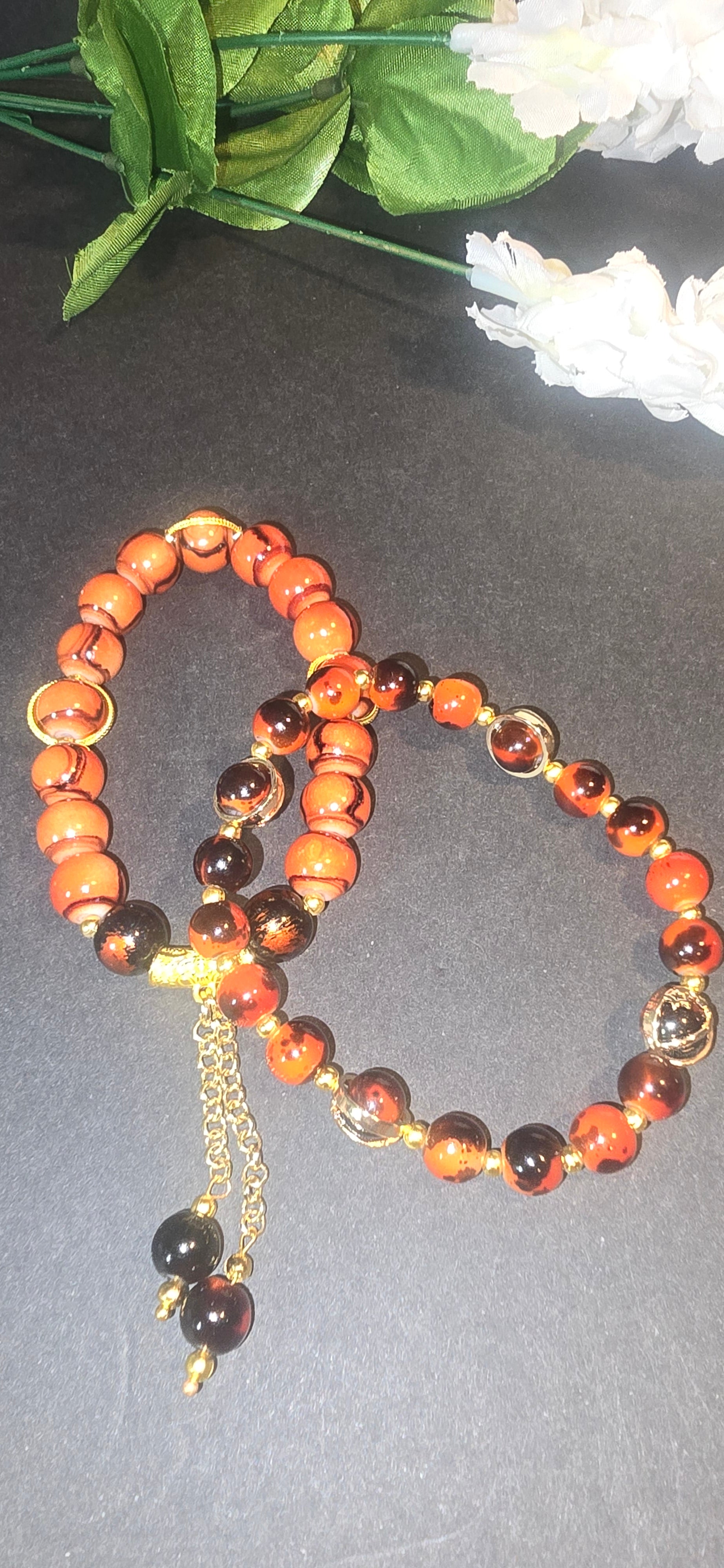 Glass beads with metal alloy. Made with crystal stretch string for maximum stretch and durability.