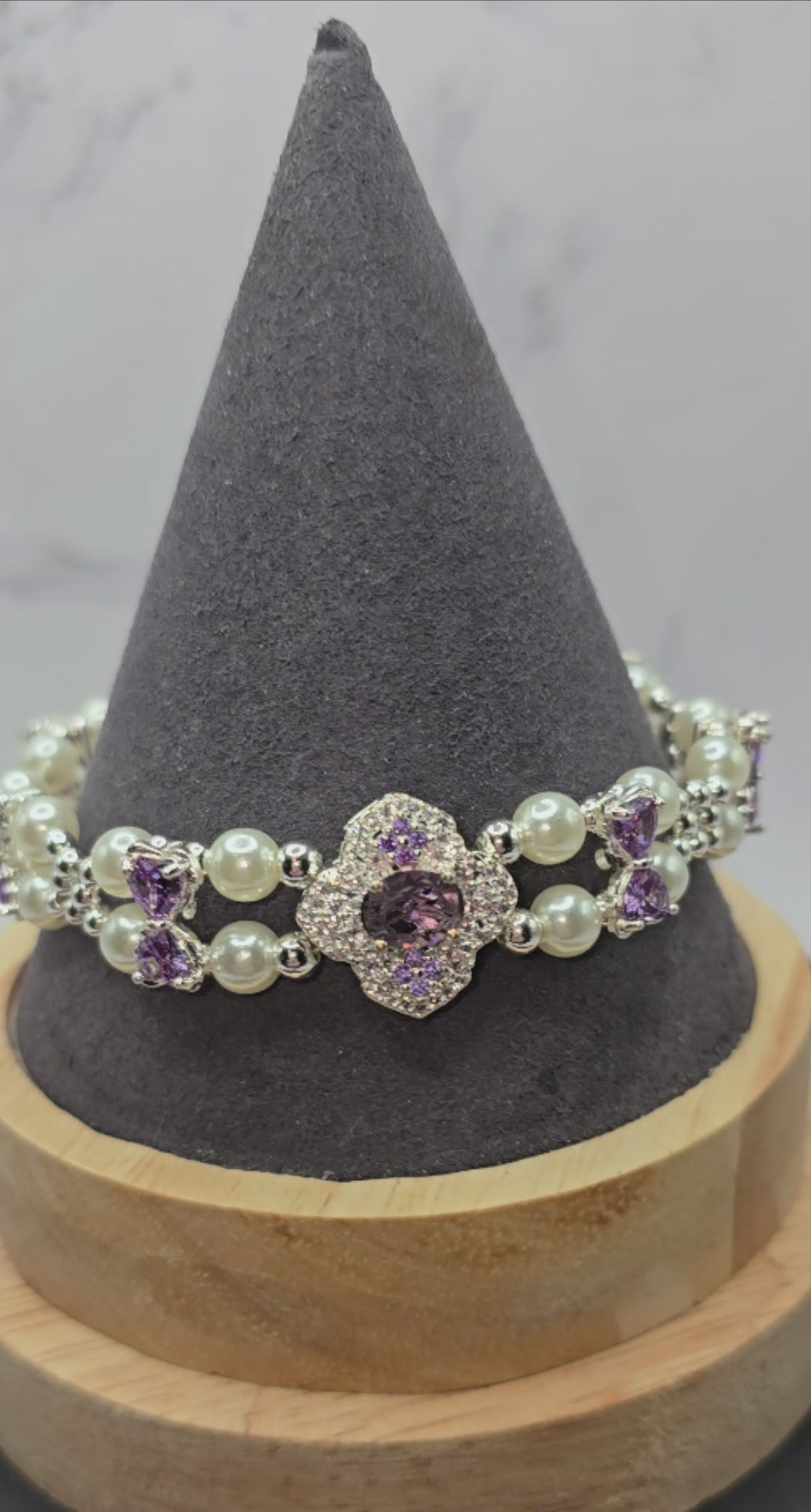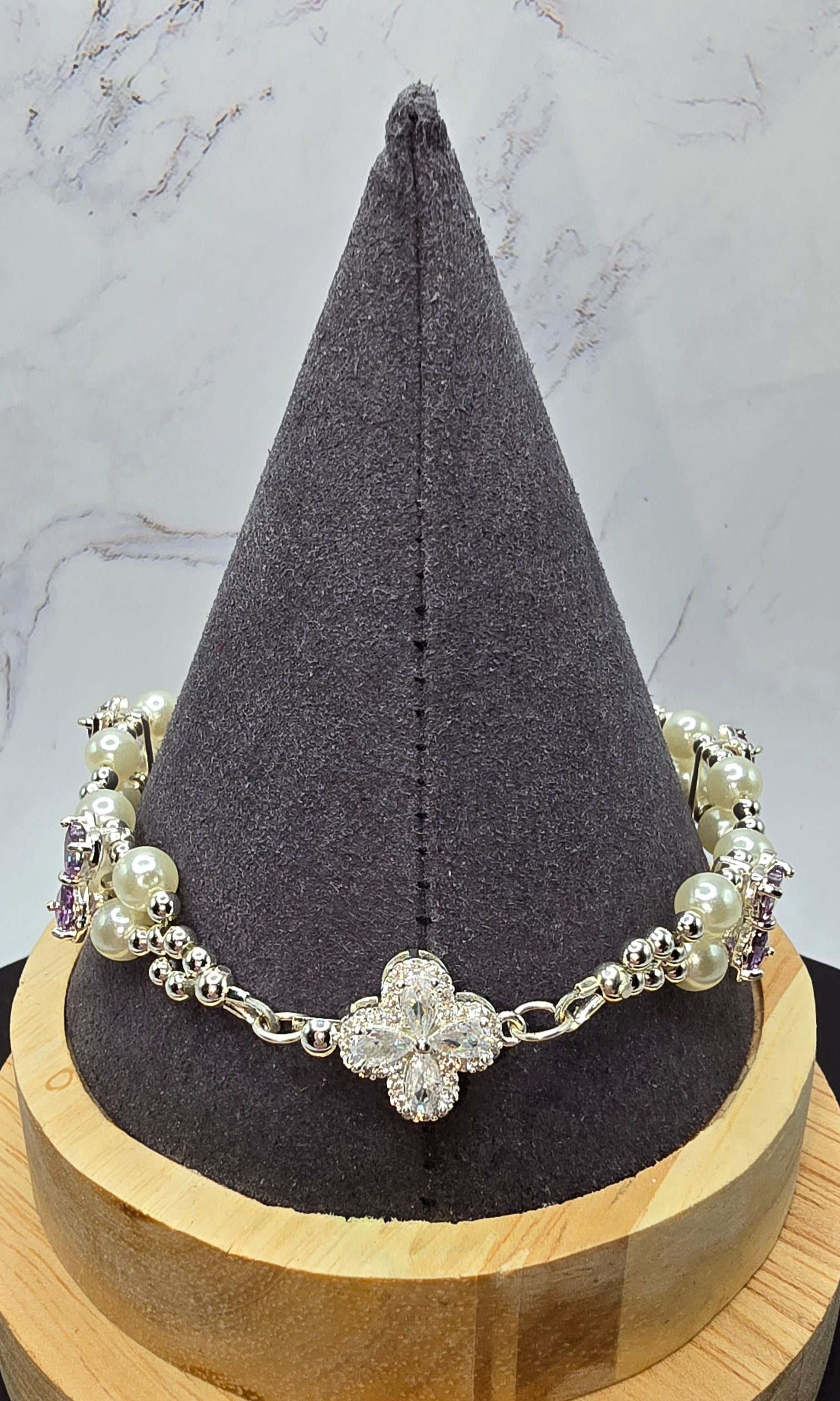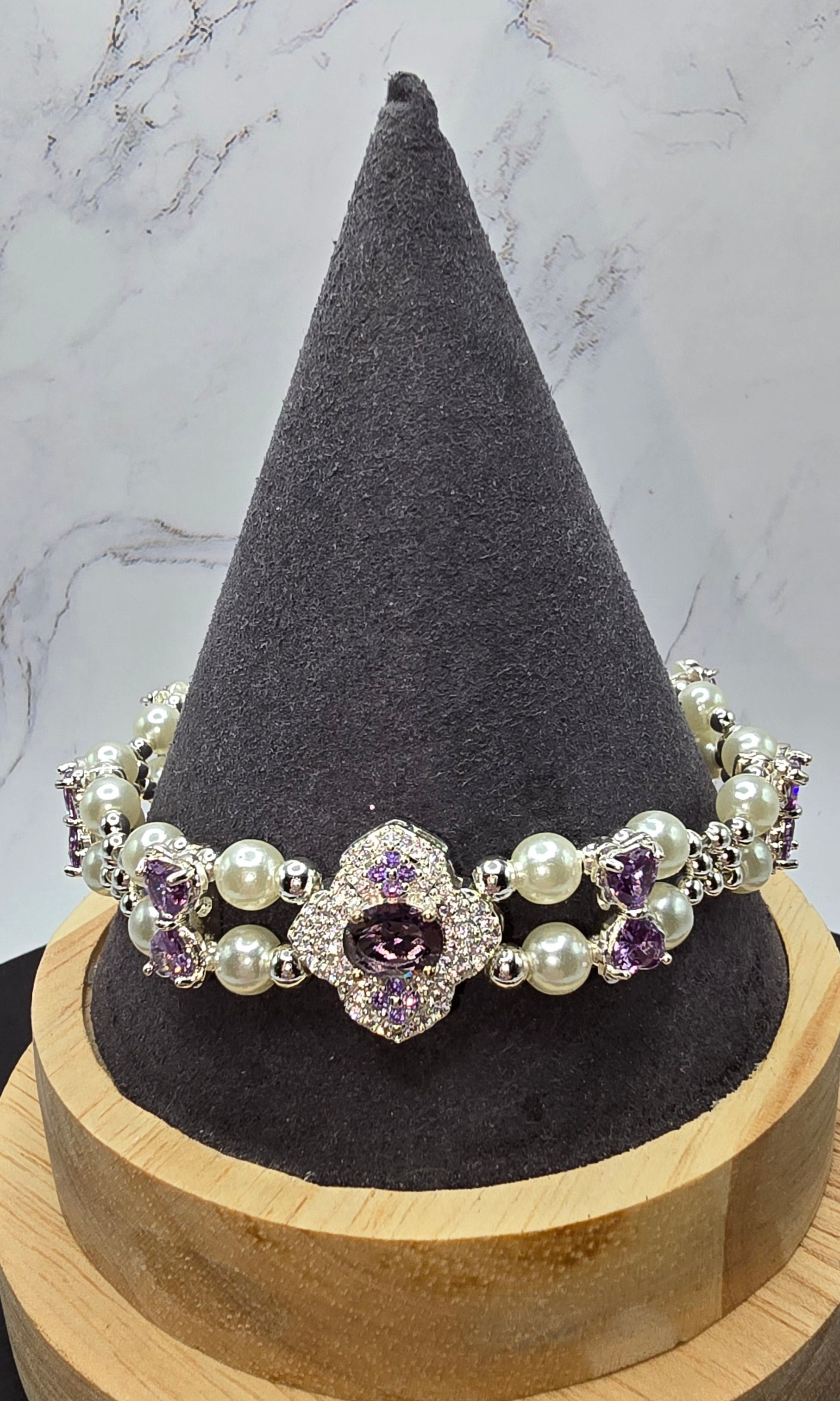 Purple and Pearls Bracelet (8 in)