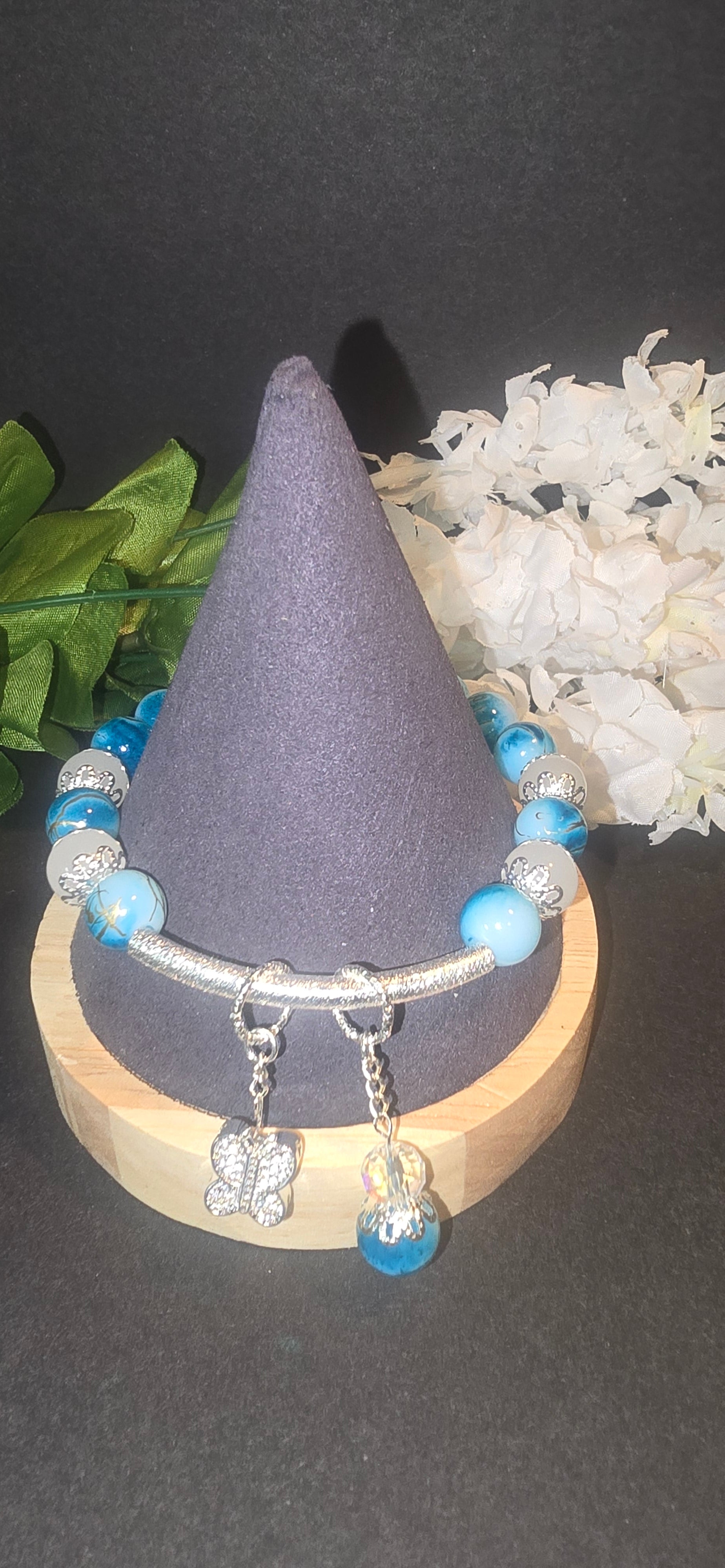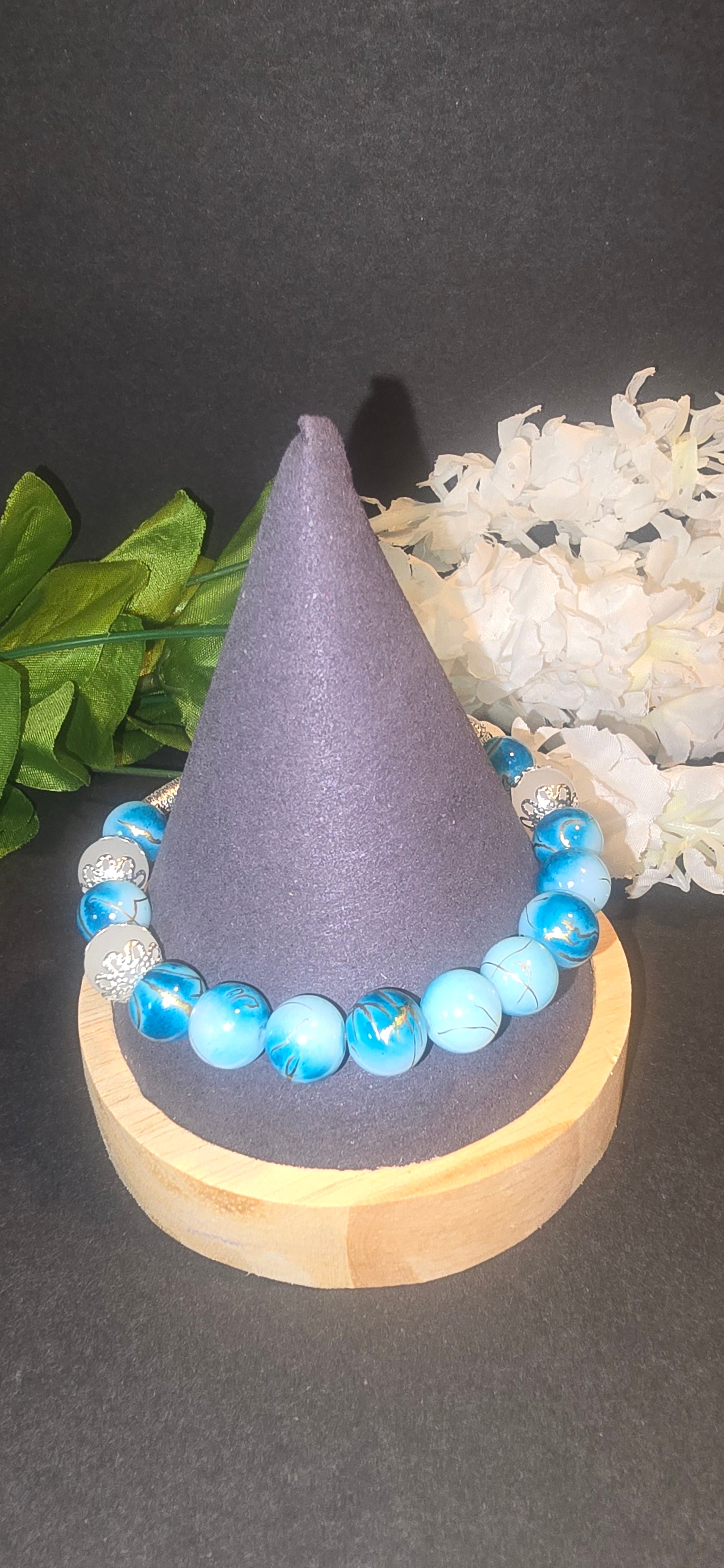 Blue and Silver Beaded Bracelet