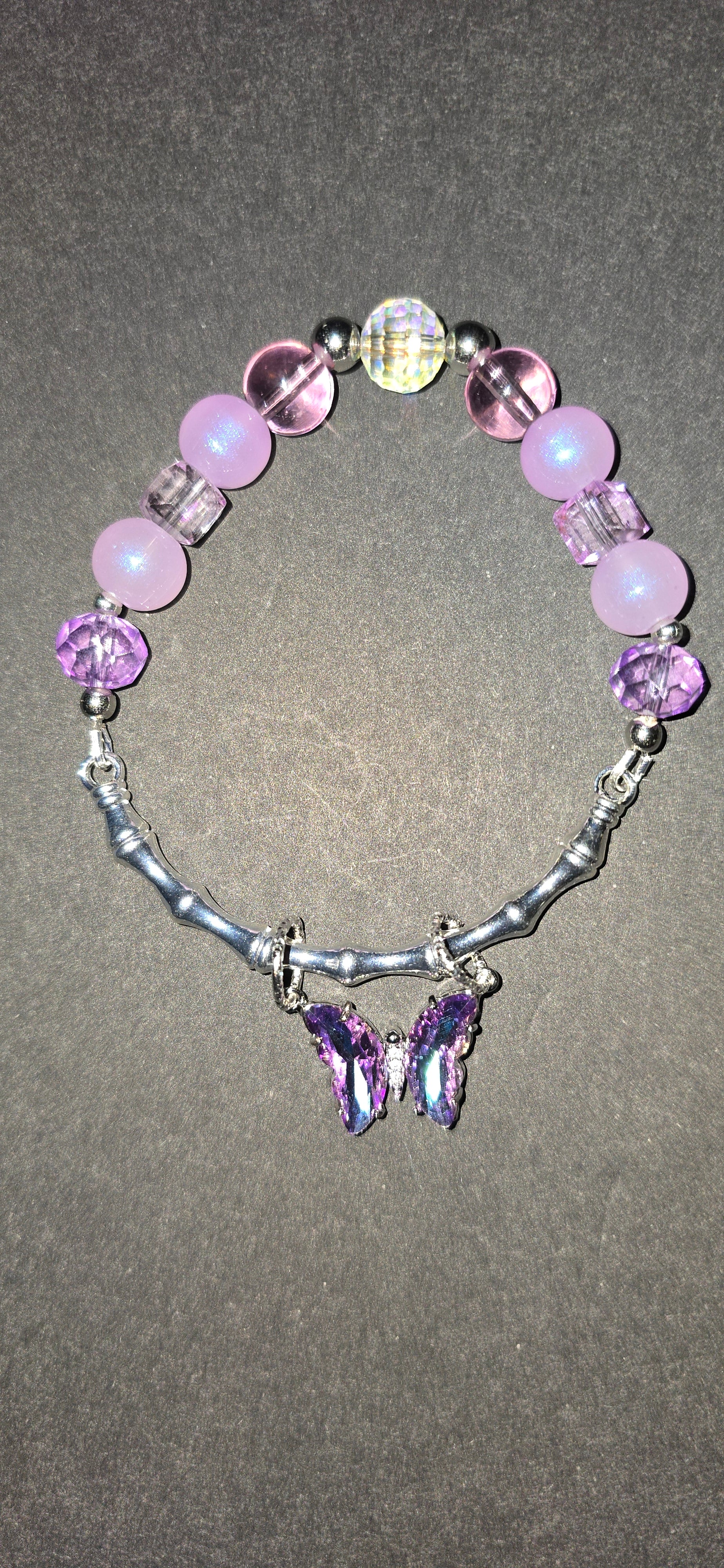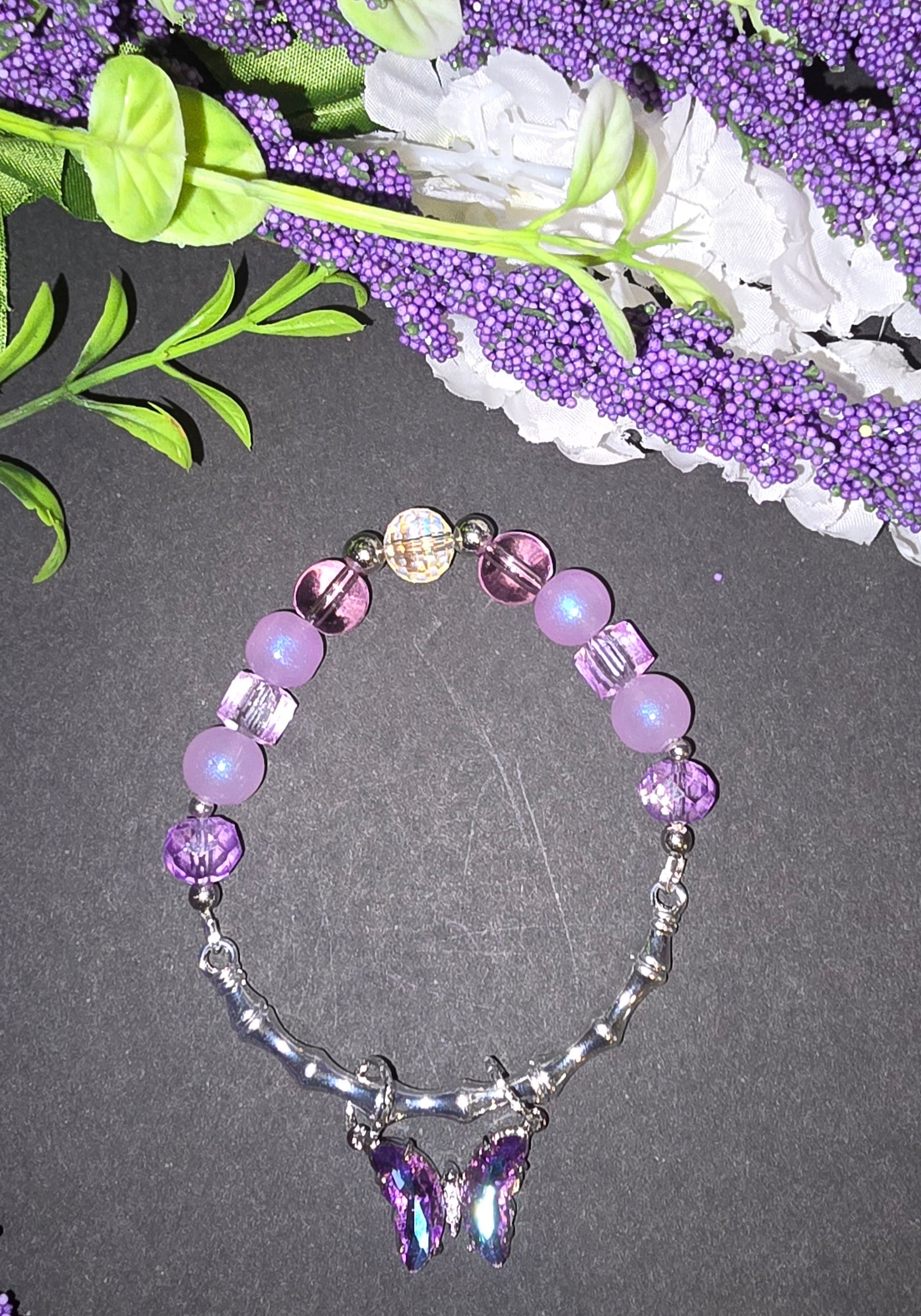 Made with high quality glass and crystal beads. Silver bangle is alloy metal.