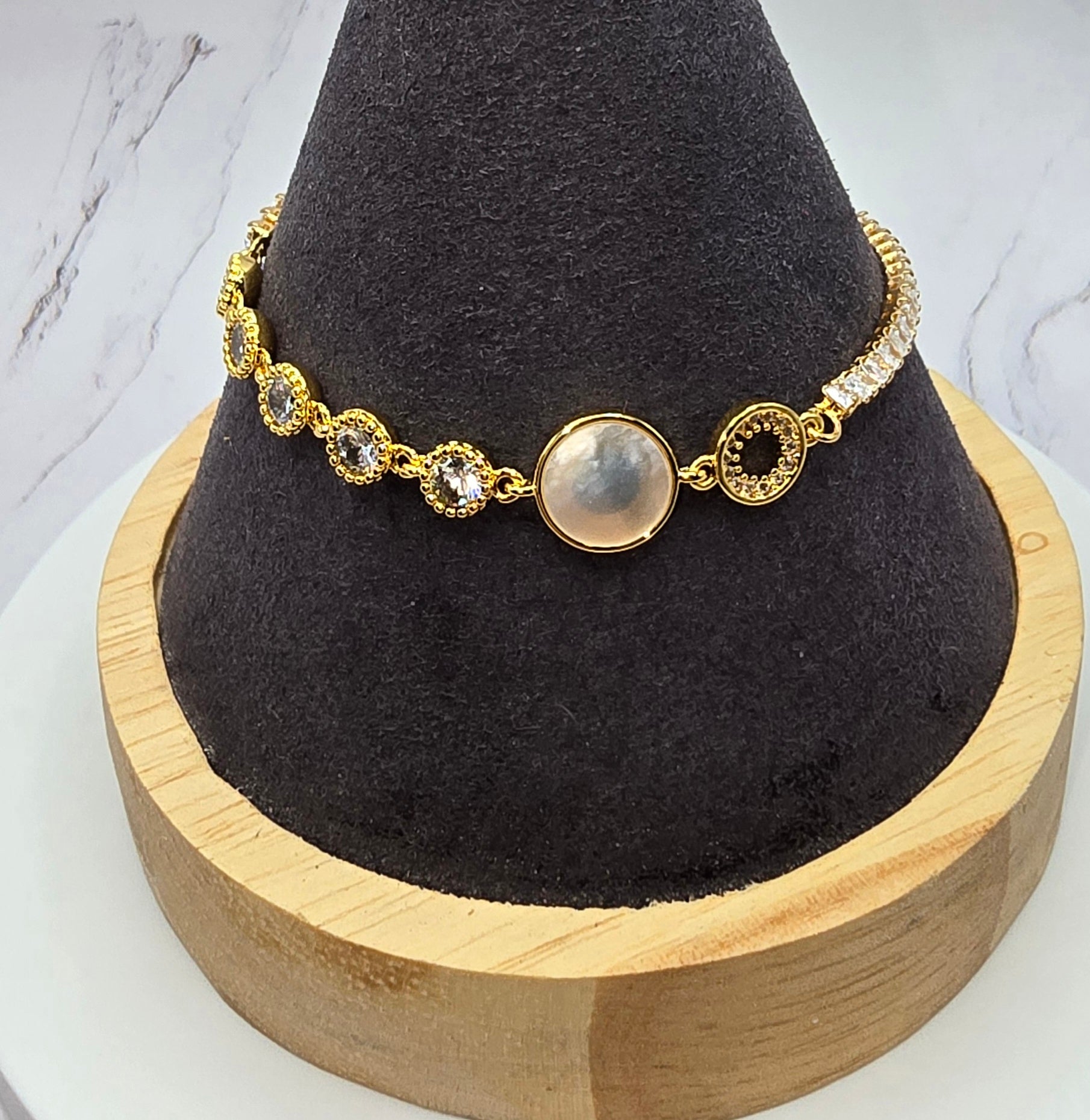 Round Shell Bling Gold Slide Bracelet