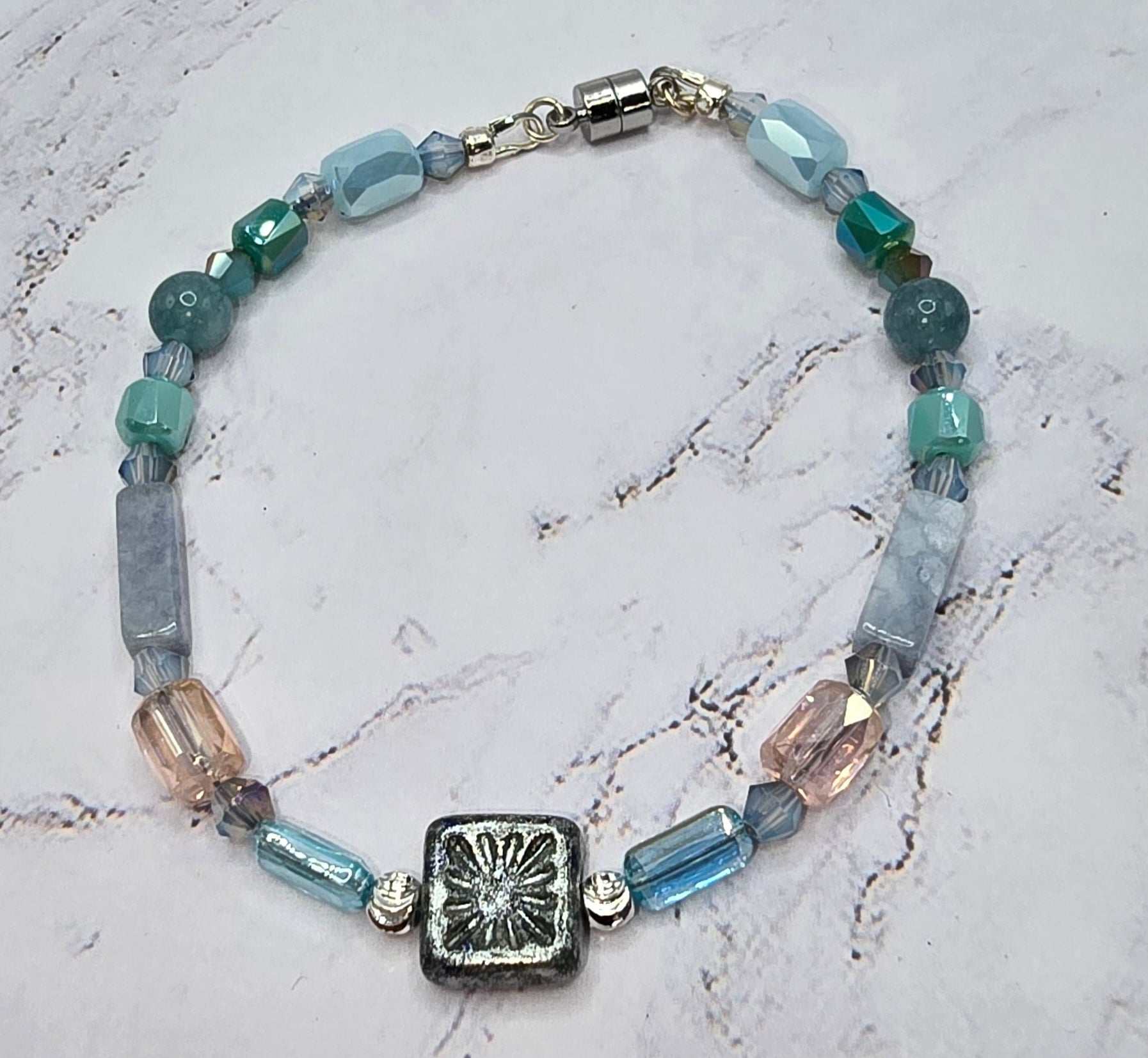 Elevate your accessory game with this exquisite beaded bracelet. Crafted with high quality glass and crystal beads and metal alloy / copper. This bracelet is designed for durability and long-lasting wear.