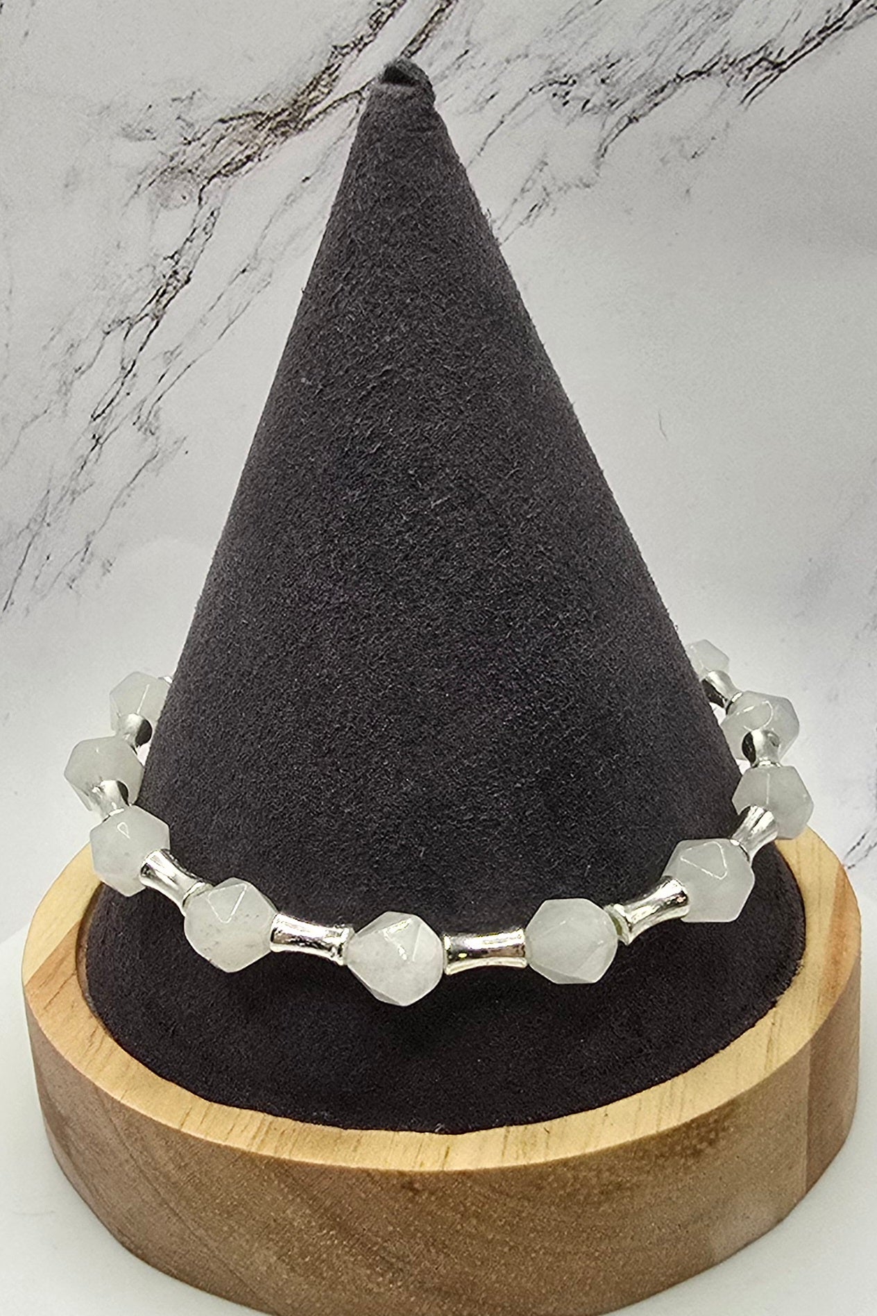 * High-Quality Materials: Made with White Jade (flower cut), metal alloy and crystal stretch string ensuring a robust and long-lasting accessory. Crystal stretch string allows for easy wear.