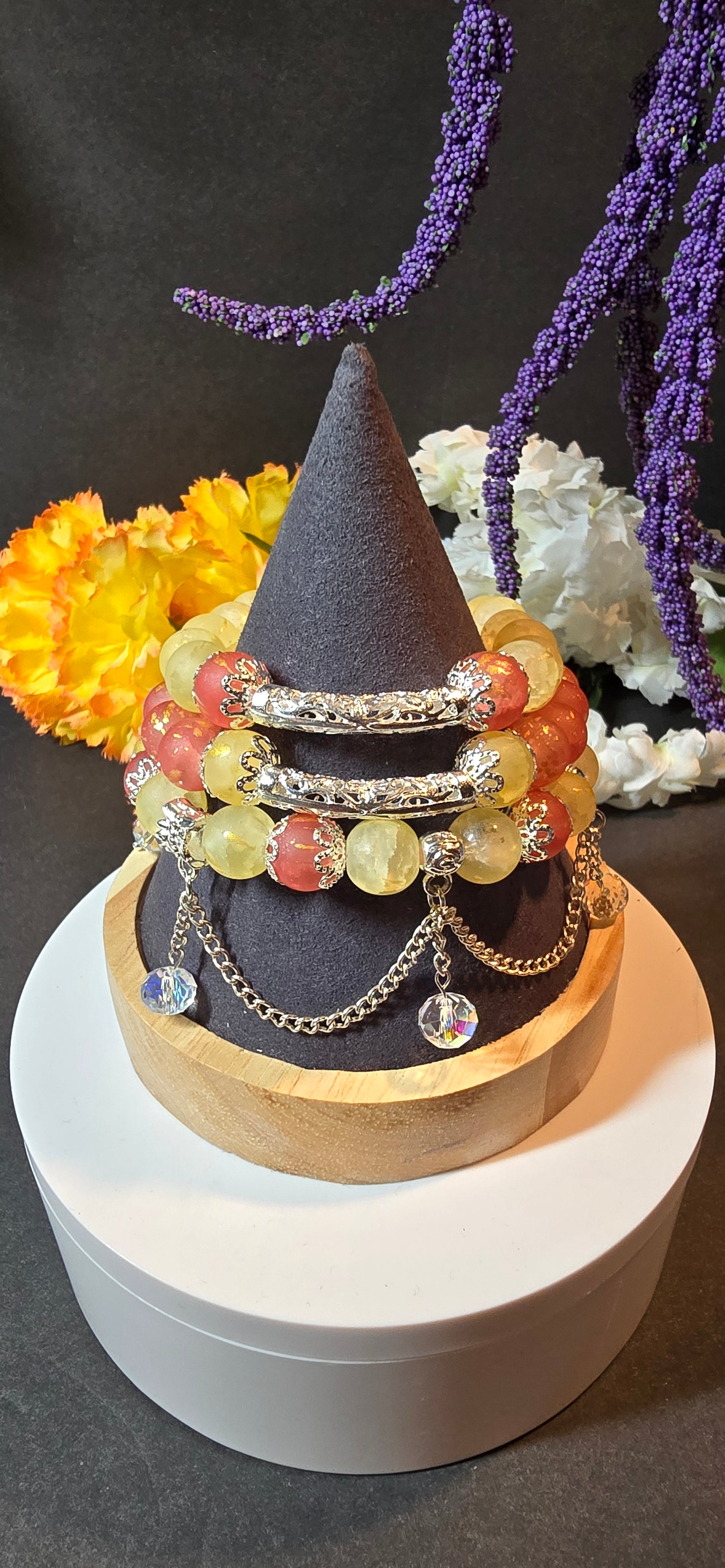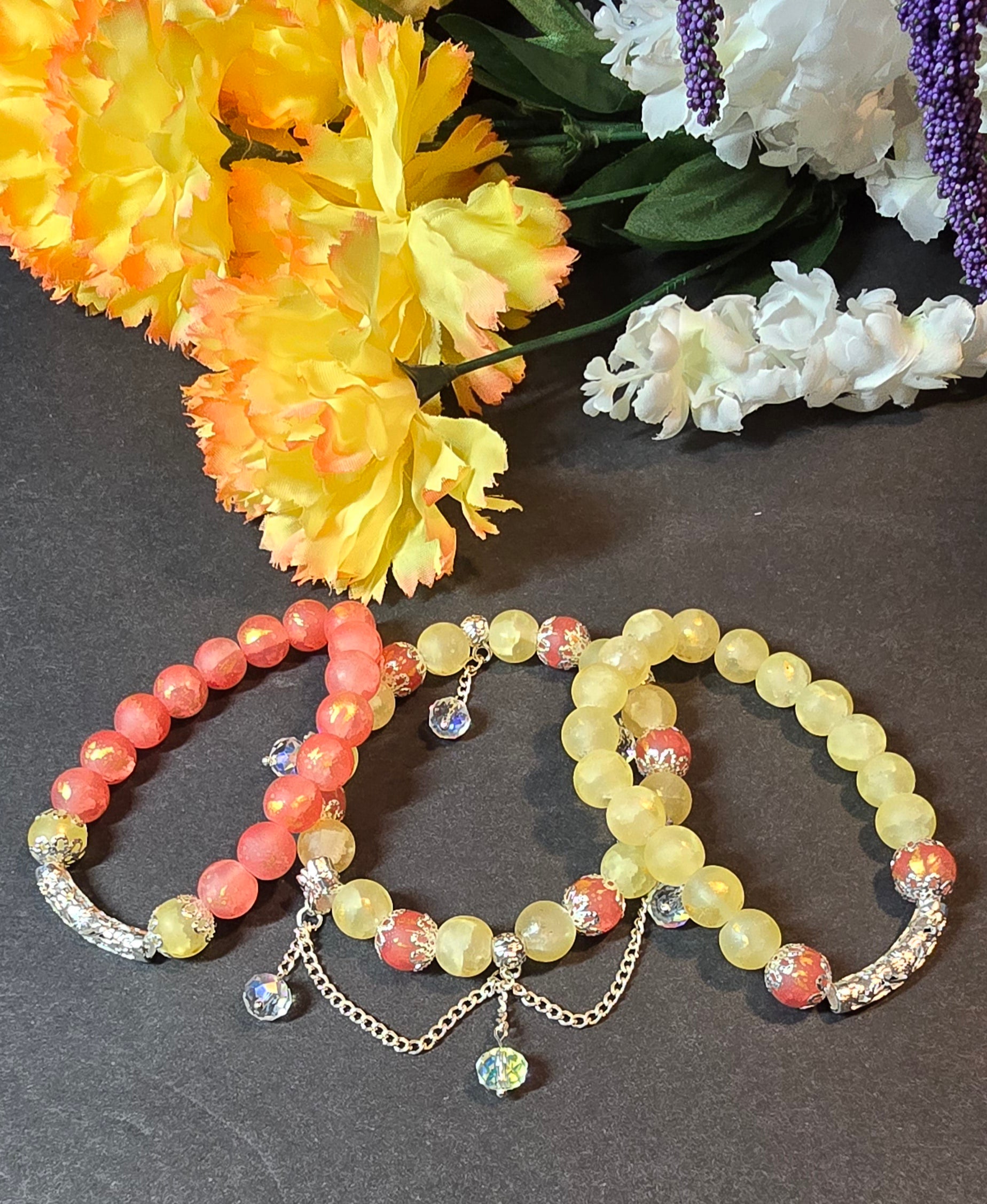 This set is made with glass / crystal beads and crystal stretch string for maximum stretch and durability.