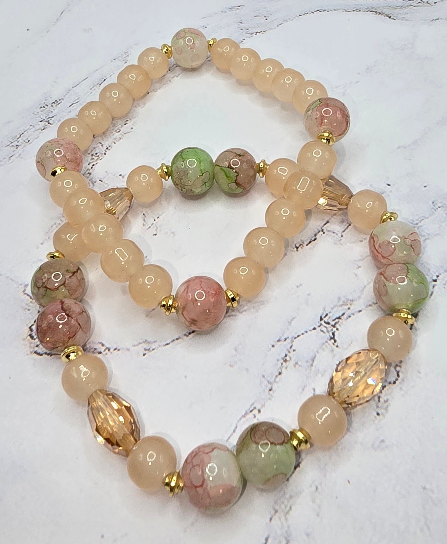 Elevate your accessory game with this exquisite beaded bracelet. Crafted with high quality glass beads, metal alloy / copper and crystal stretch string. This bracelet is designed for durability and long-lasting wear.